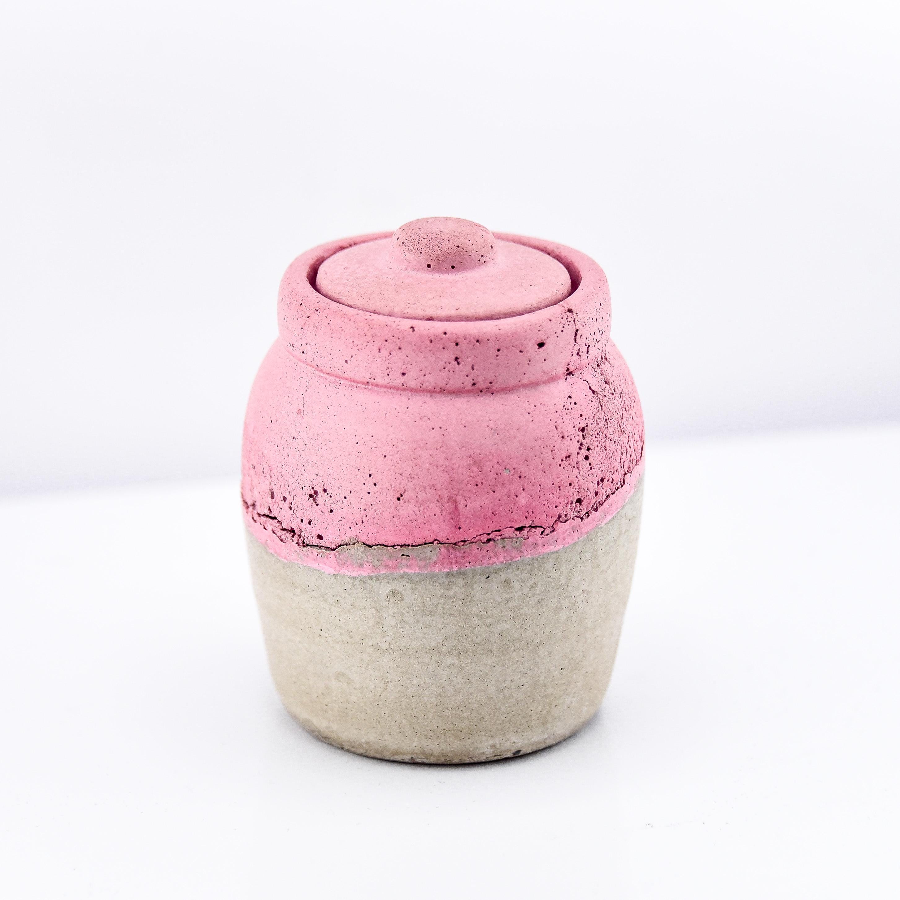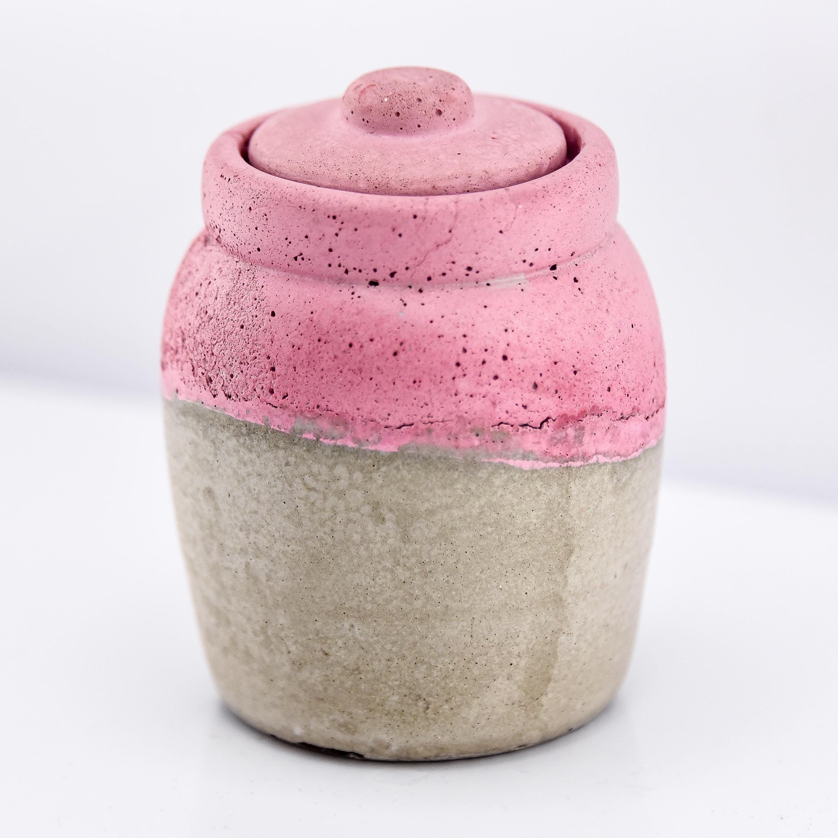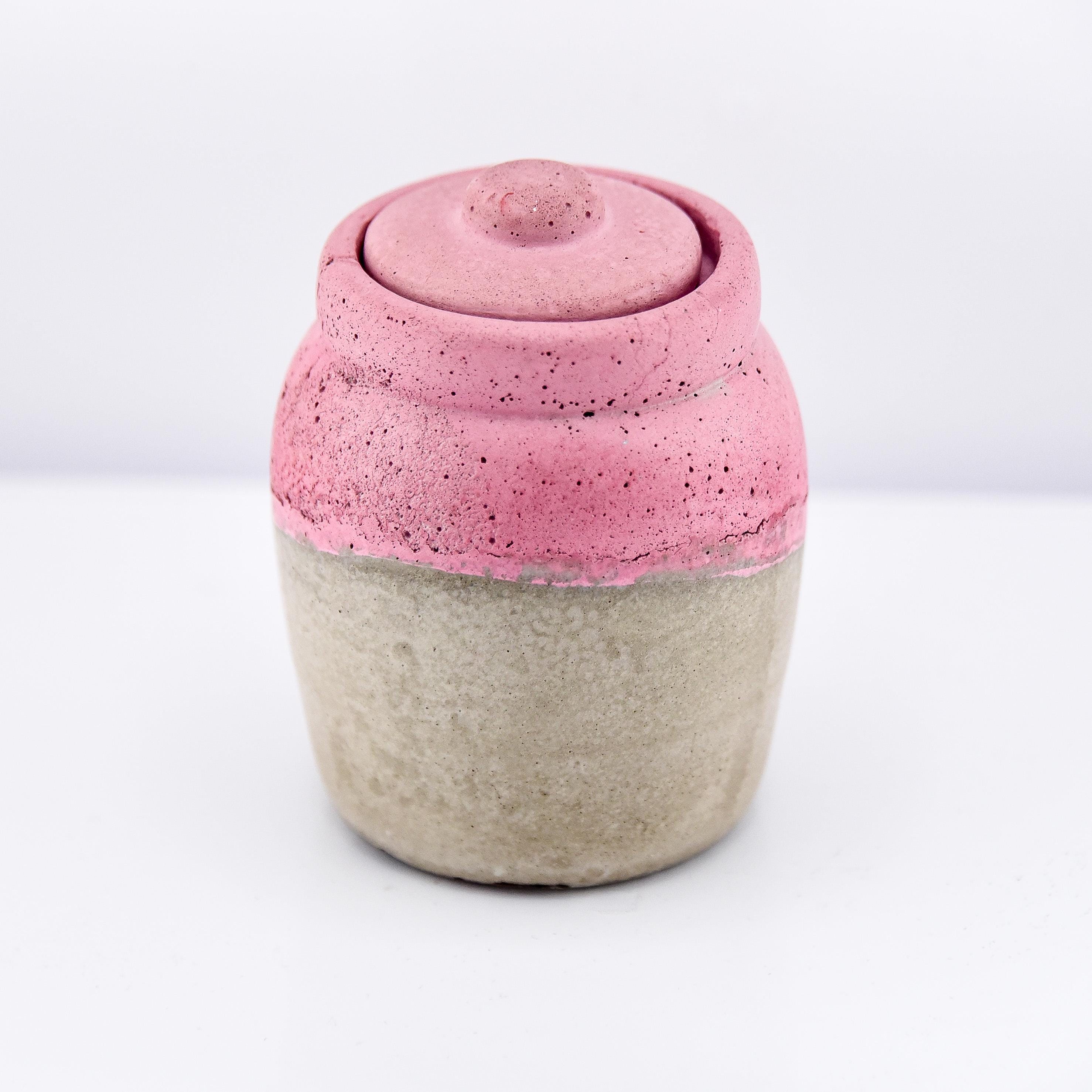 This handmade concrete jar with lid is a modern little treasure designed for form and function. Perfect for keeping rings, earrings, spices, or small keepsakes safe, it adds a sculptural touch to your handmade decor. Each piece is hand-poured and sanded, with natural air pockets and variations that make every jar one of a kind. The minimalist design fits beautifully on a bedside table, desk, or bathroom shelf—a subtle mix of utility and art.