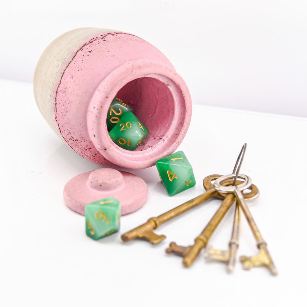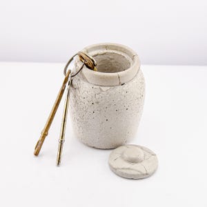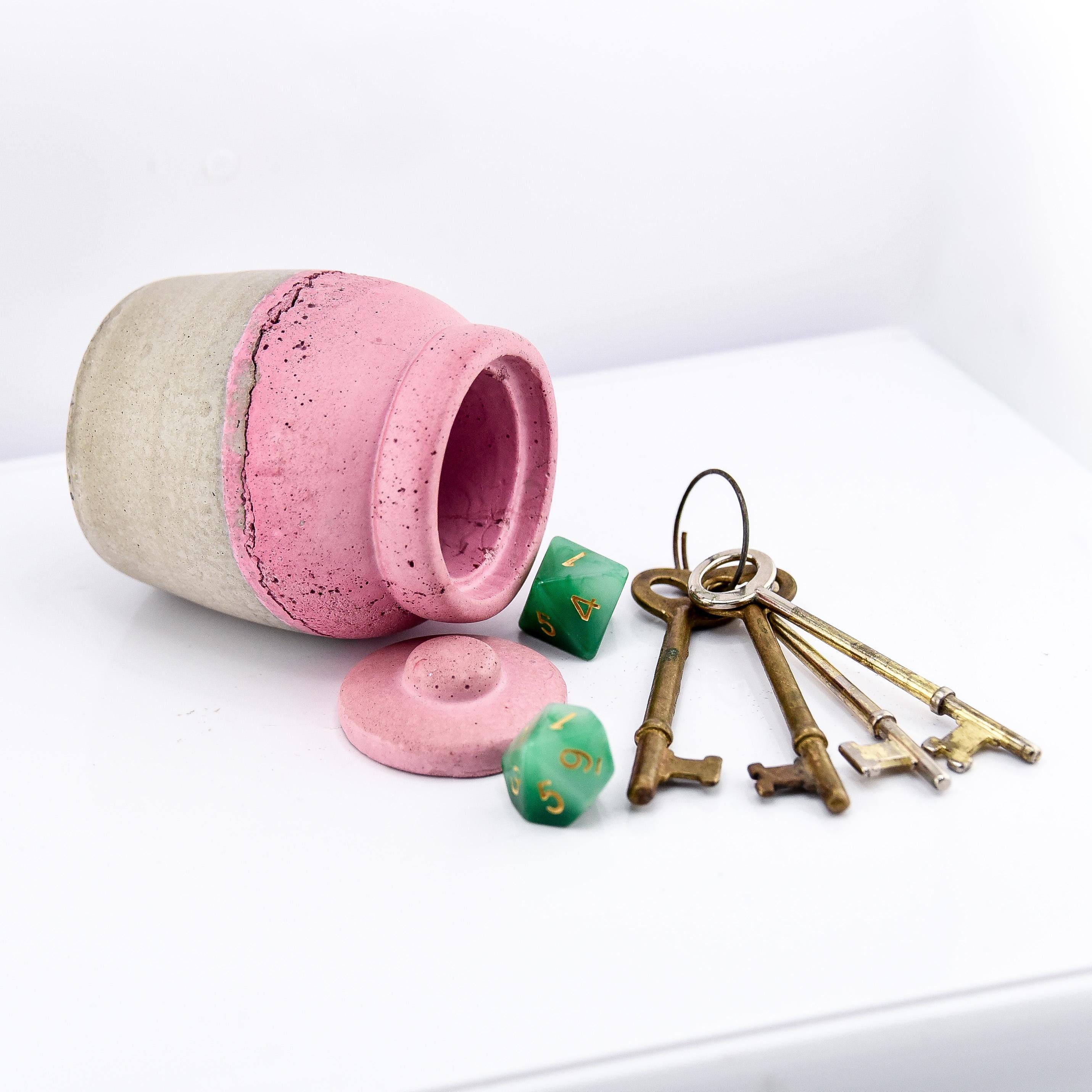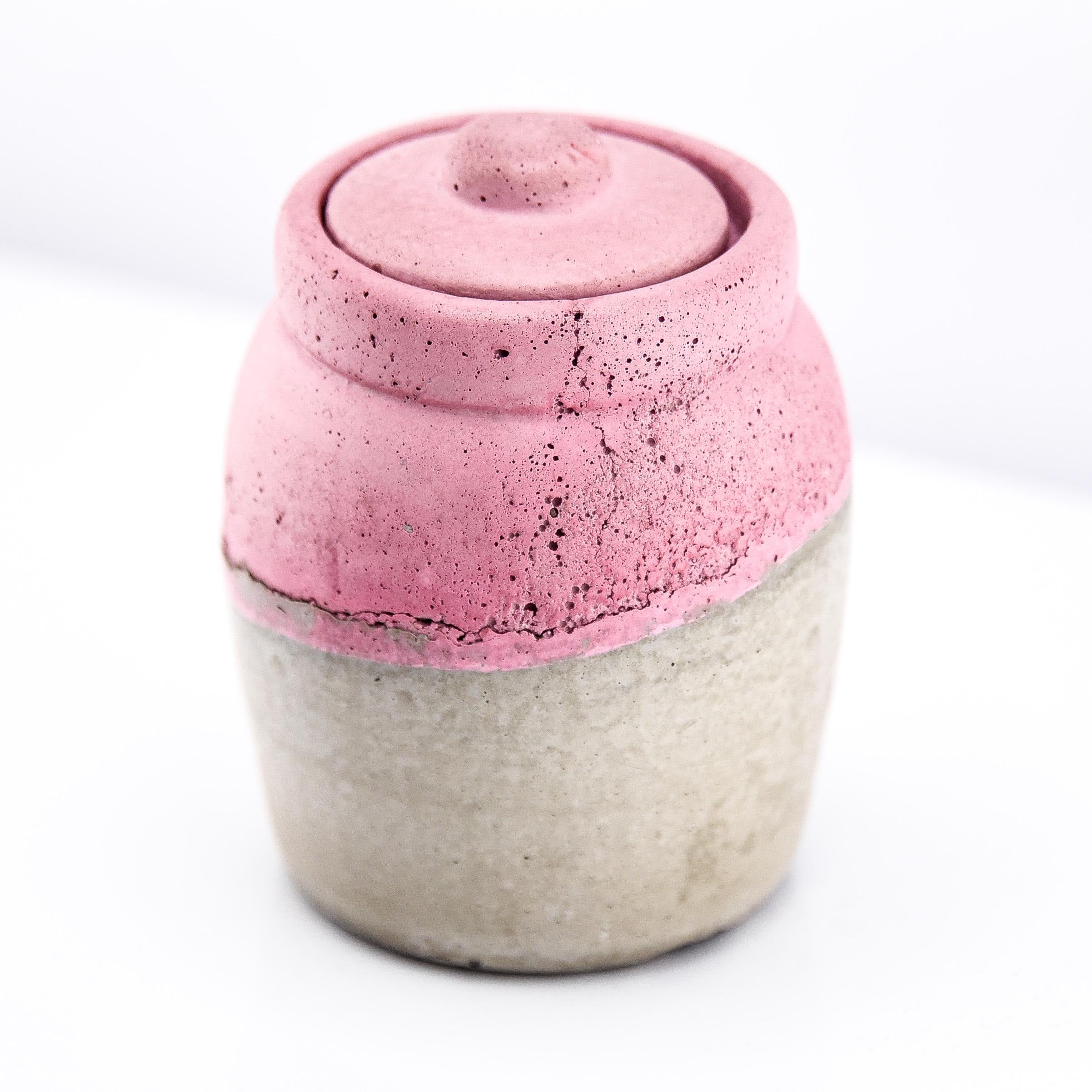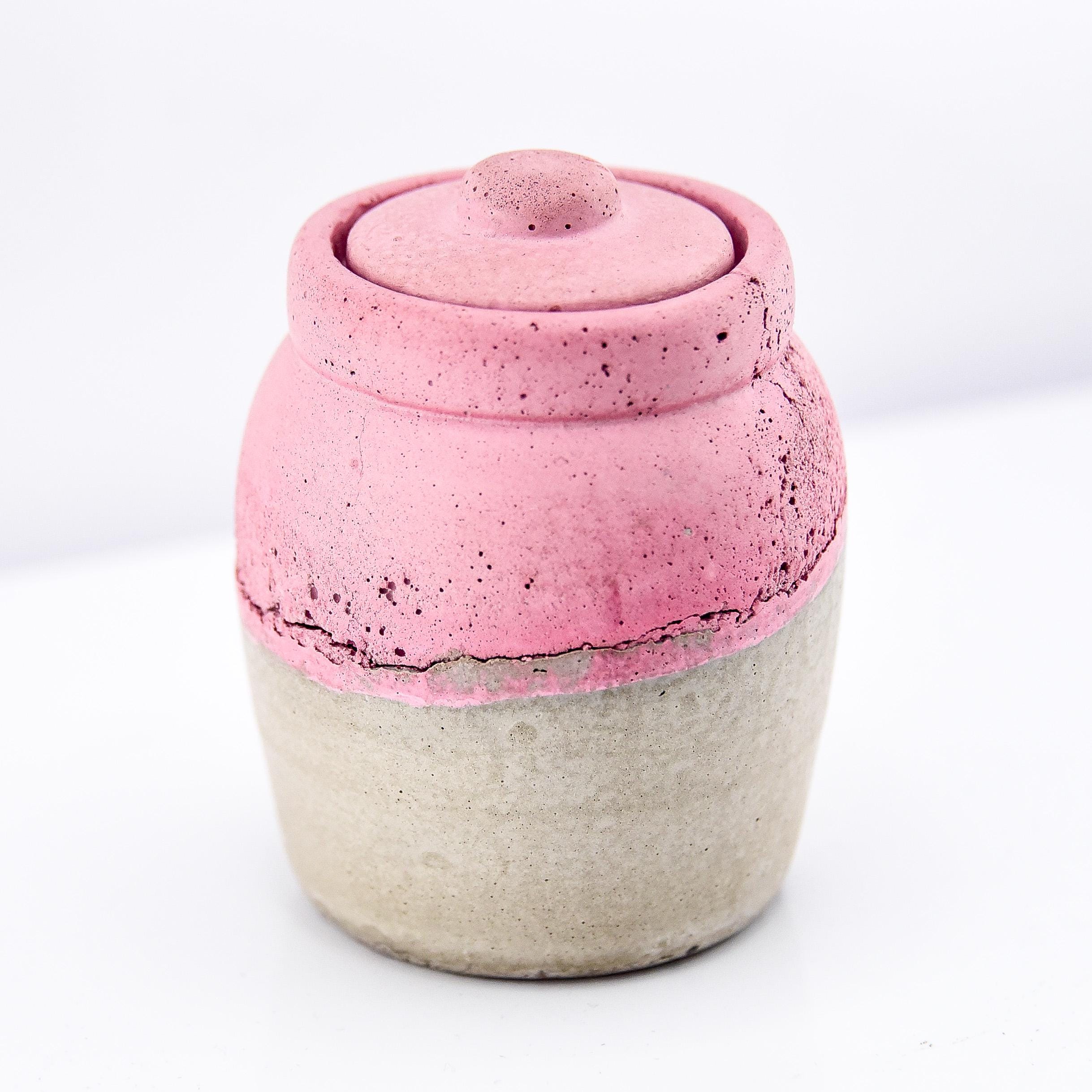This handmade concrete jar with lid is a modern little treasure designed for form and function. Perfect for keeping rings, earrings, spices, or small keepsakes safe, it adds a sculptural touch to your handmade decor. Each piece is hand-poured and sanded, with natural air pockets and variations that make every jar one of a kind. The minimalist design fits beautifully on a bedside table, desk, or bathroom shelf—a subtle mix of utility and art.