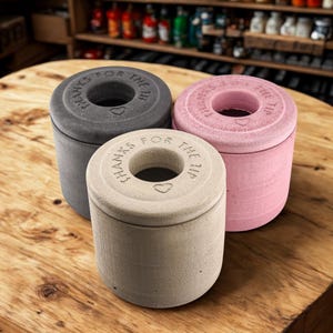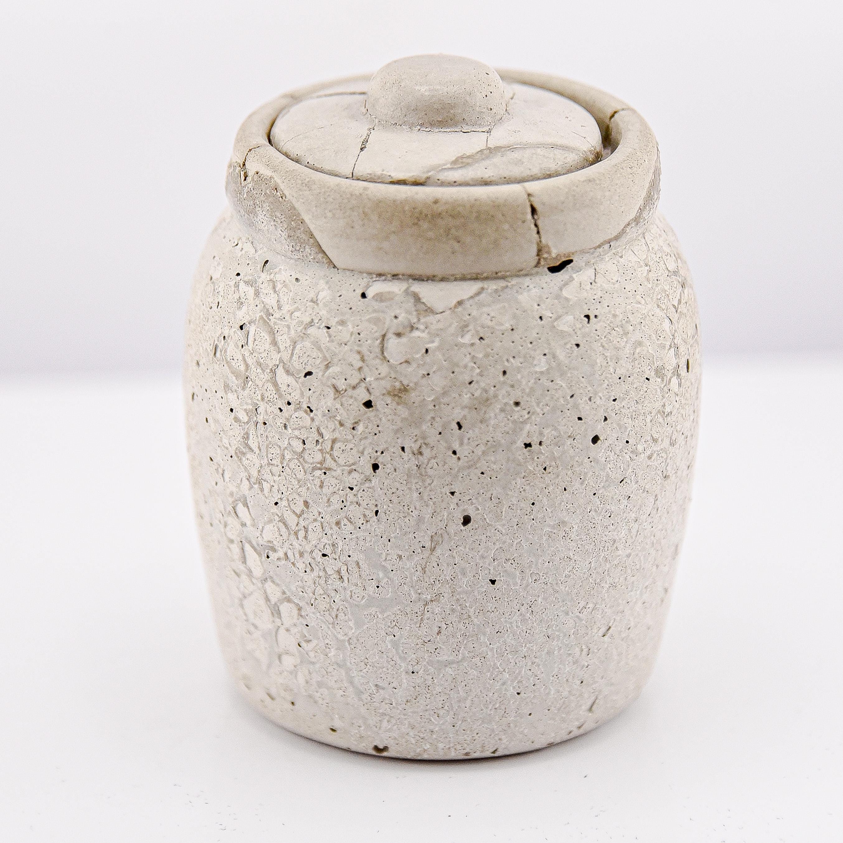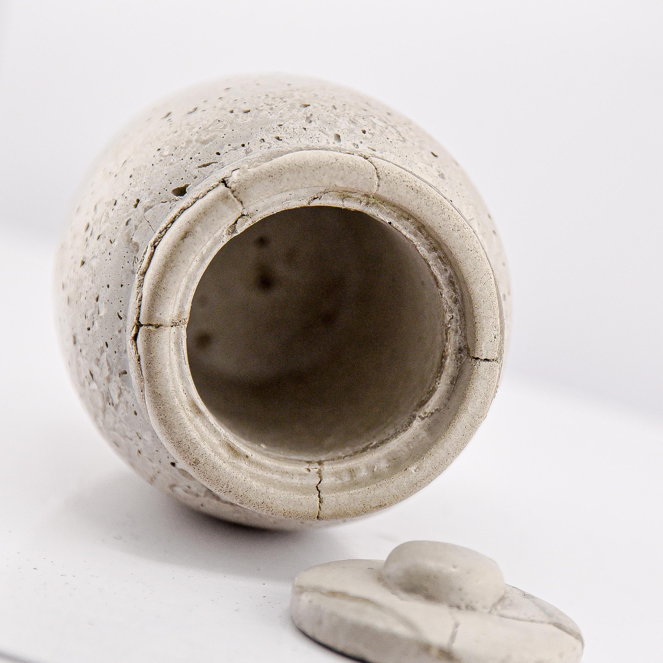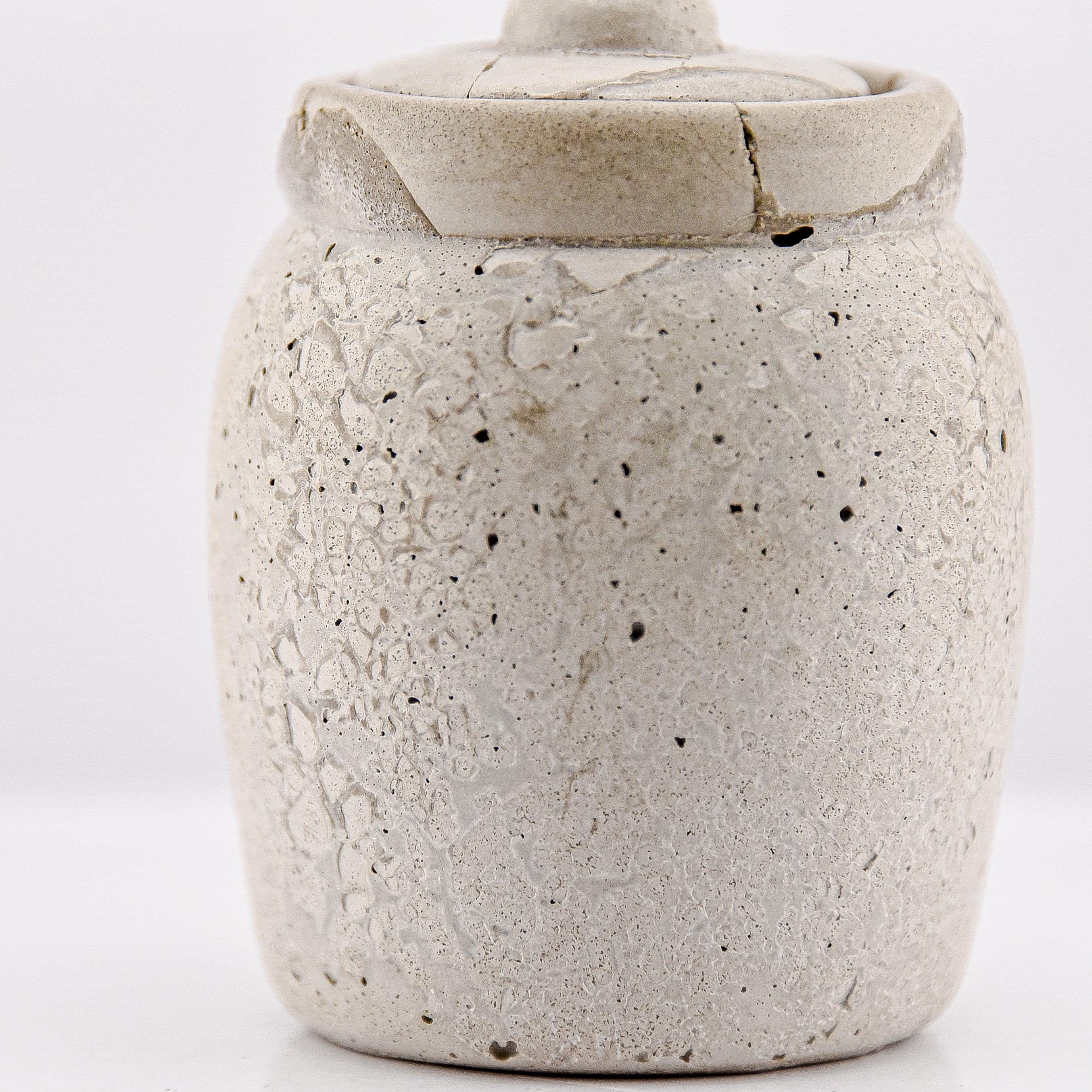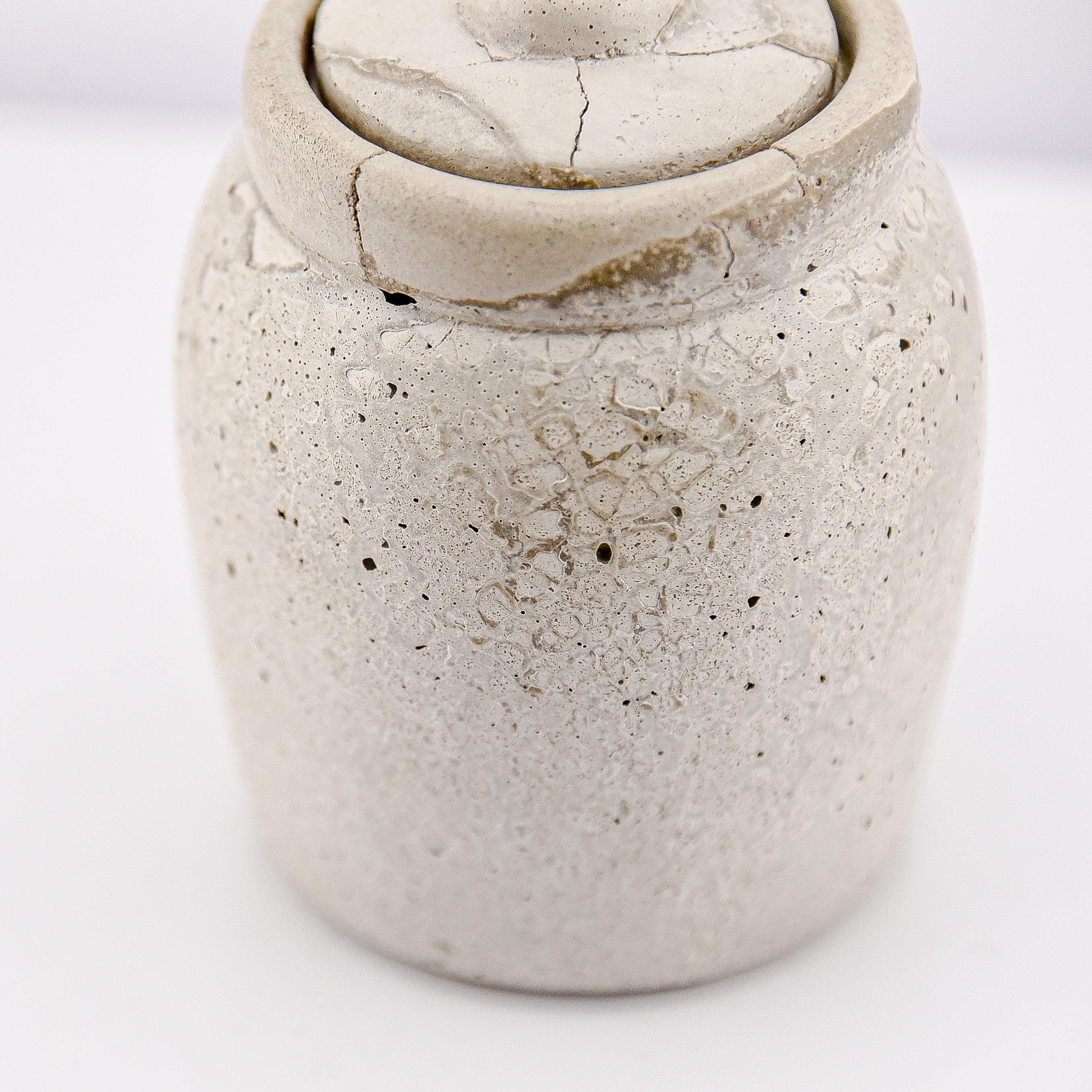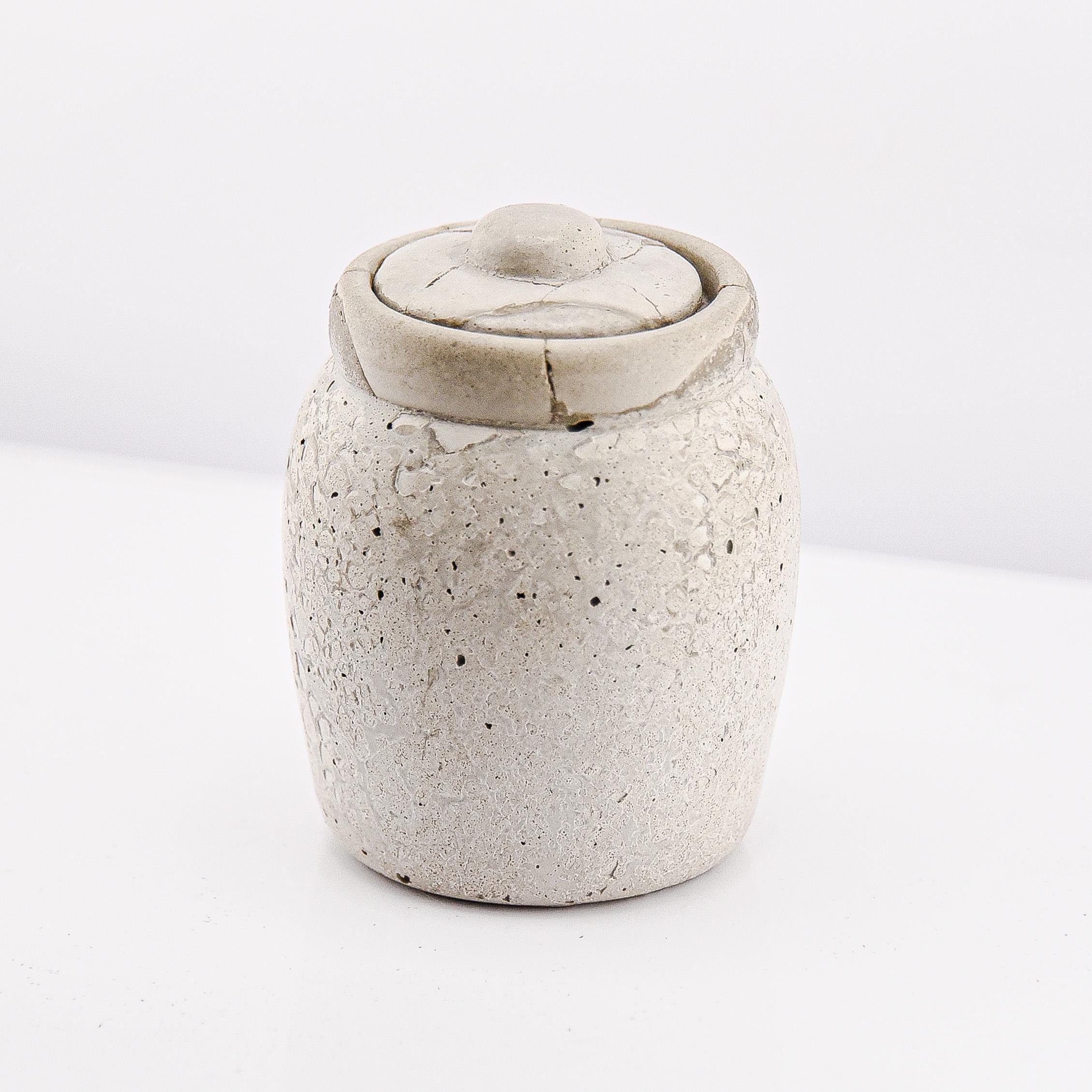 This handmade concrete jar with lid is a modern little treasure designed for form and function. Perfect for keeping rings, earrings, spices, or small keepsakes safe, it adds a sculptural touch to your handmade decor. Each piece is hand-poured and sanded, with natural air pockets and variations that make every jar one of a kind. The minimalist design fits beautifully on a bedside table, desk, or bathroom shelf—a subtle mix of utility and art.