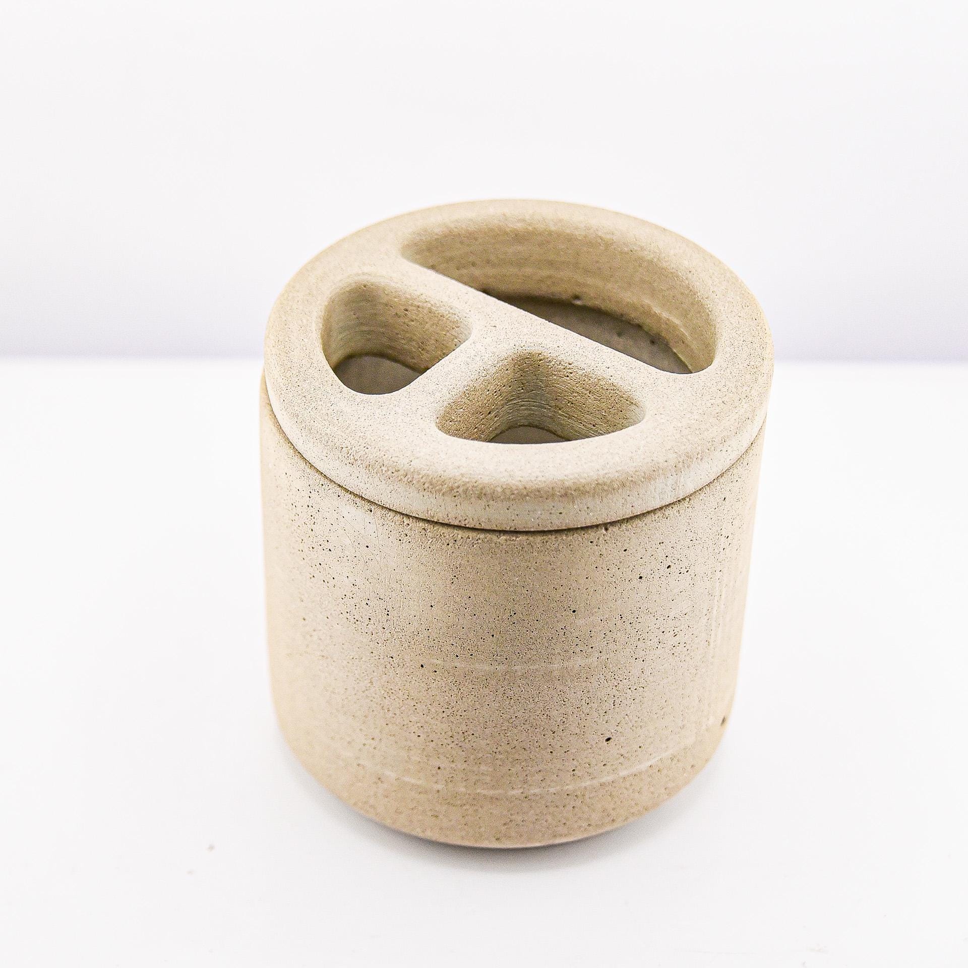 This handmade concrete desk organizer is designed to keep your workspace calm, functional, and visually grounded. Cast from a custom mold, each jar features a smooth cylindrical body and a removable concrete lid with divided openings, making it easy to organize pens, pencils, markers, scissors, or small desk essentials. At 4 inches tall, it’s compact enough for any desk while still offering substantial weight and stability—no tipping, no sliding. The minimalist design works equally well in home offices, studios, classrooms, or creative workspaces. Each piece is individually hand-poured, sanded, and sealed, so subtle variations in texture and tone are part of what makes every organizer unique.