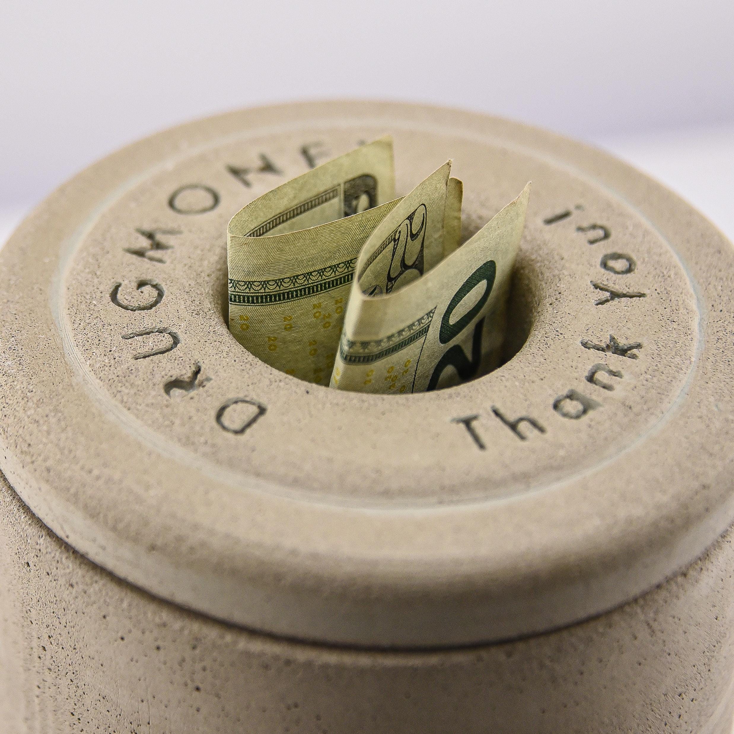 This 4” x 4” handmade concrete tip jar is sturdy, modern, and actually fun to display. Made from solid concrete with a removable lid, it has a satisfying weight that stays put on counters and desks. Clean, minimalist design with just enough personality to get noticed. Perfect for coffee shops, bars, salons, studios, craft fairs, or home offices. Each jar is handmade, so slight variations in texture make every piece one of a kind.
