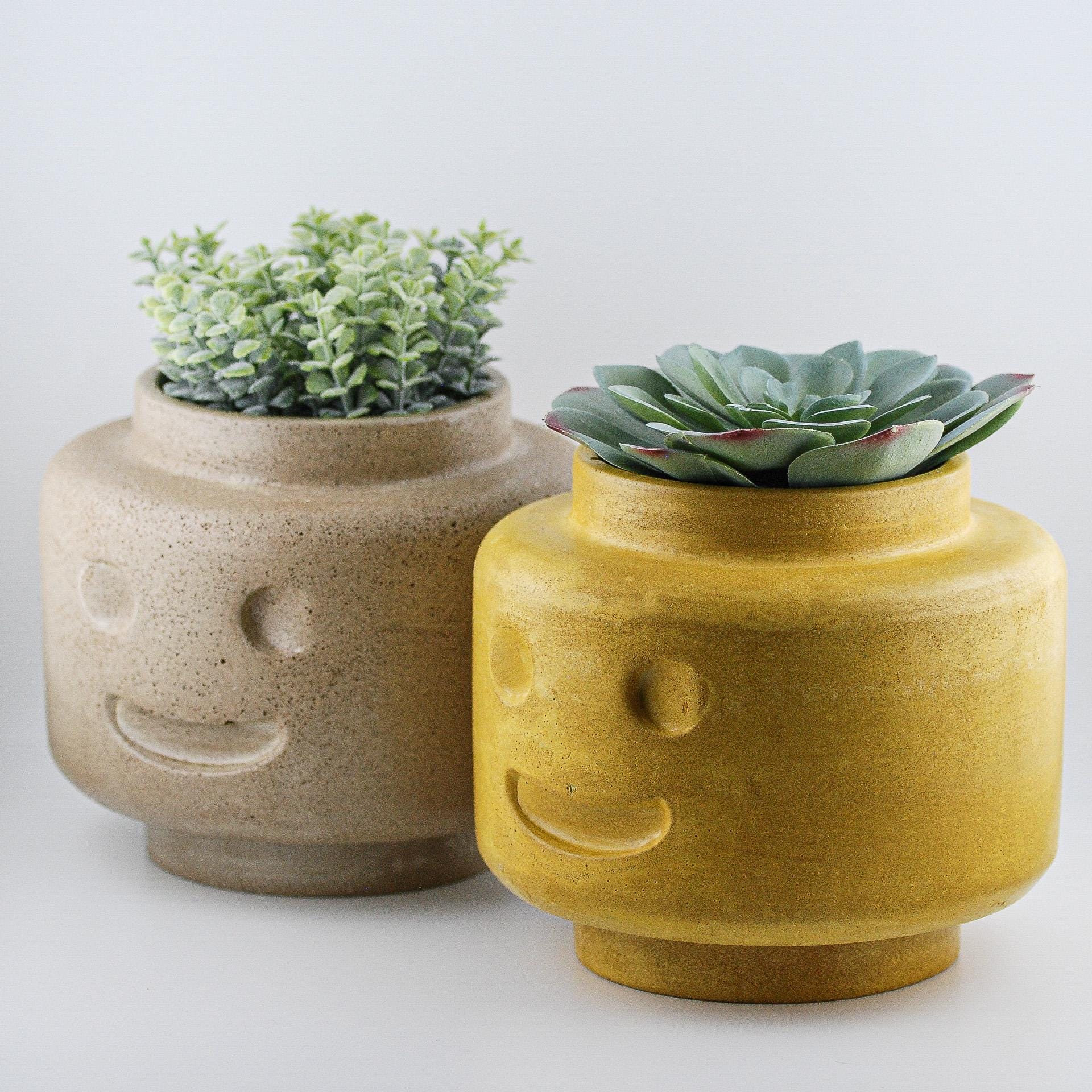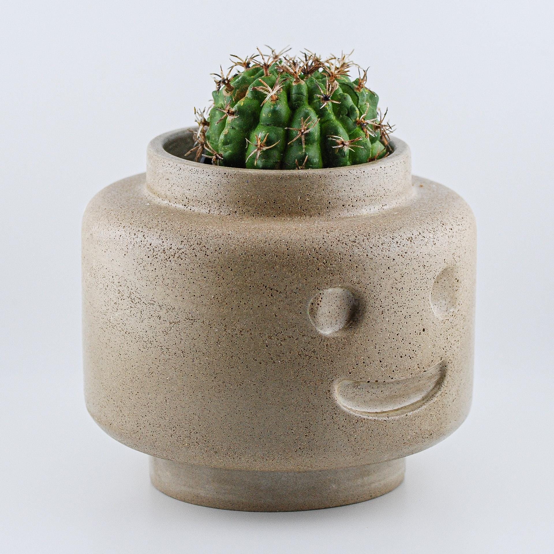 This handmade concrete head planter brings sculptural charm and function together in one bold, modern piece. Each planter is individually cast by hand from solid concrete and features a built-in drainage tray, making it perfect for succulents, bonsai, or small houseplants. With its clean lines and minimalist personality, it adds a creative touch to any room—whether on a desk, shelf, or window ledge. It can even double as a catchall bowl or decorative sculpture when not in use for plants.
