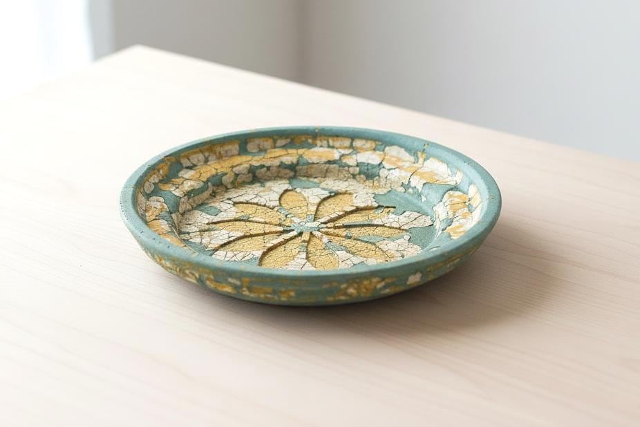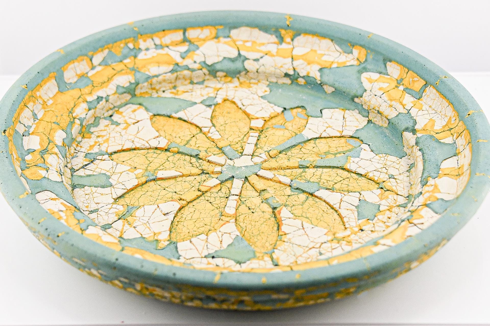 This 10-inch handmade concrete decorative plate is cast using a unique two-part process that creates a naturally cracked finish with depth and character. Made with concrete and concentrated pigment, each piece is intentionally imperfect and one of a kind.