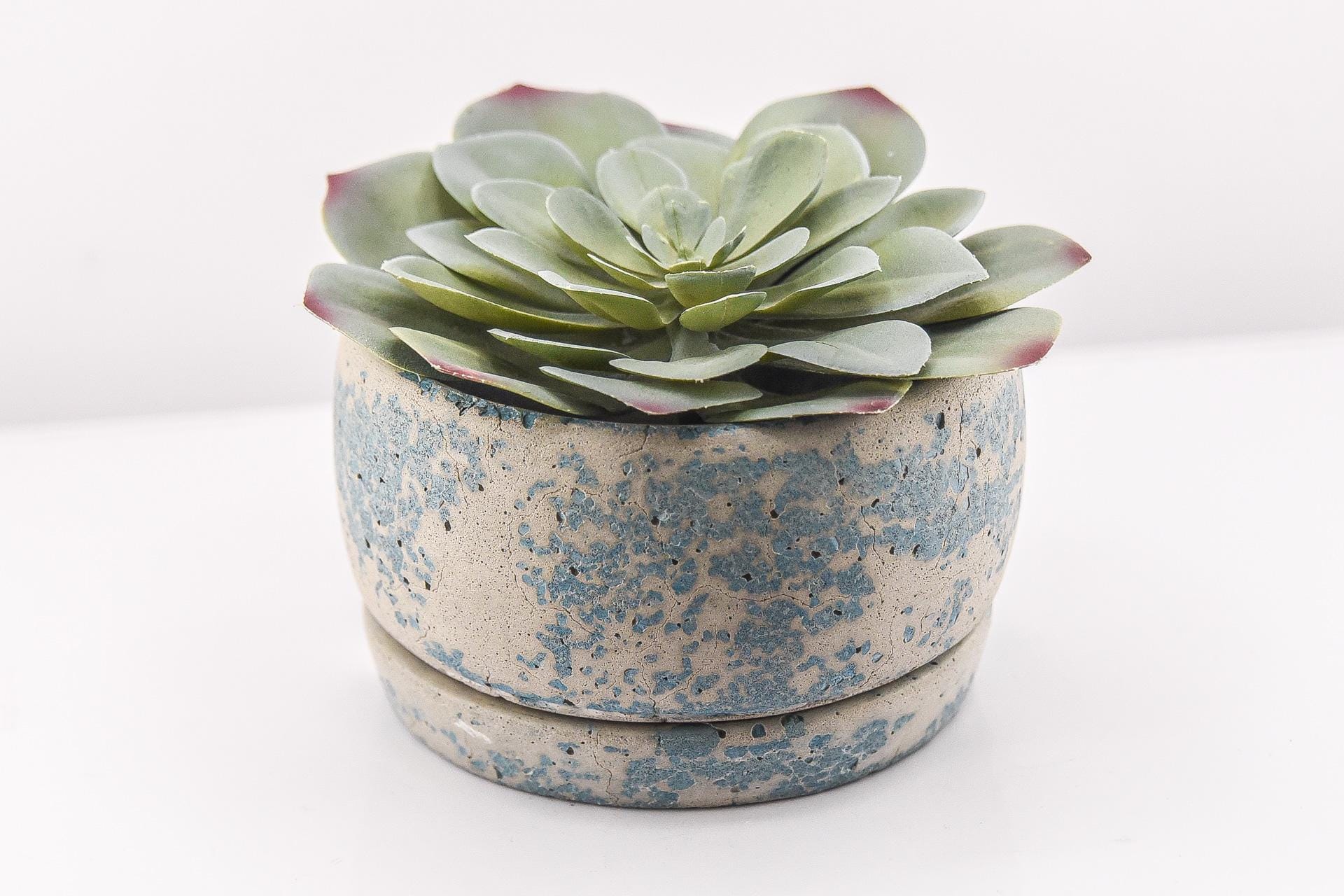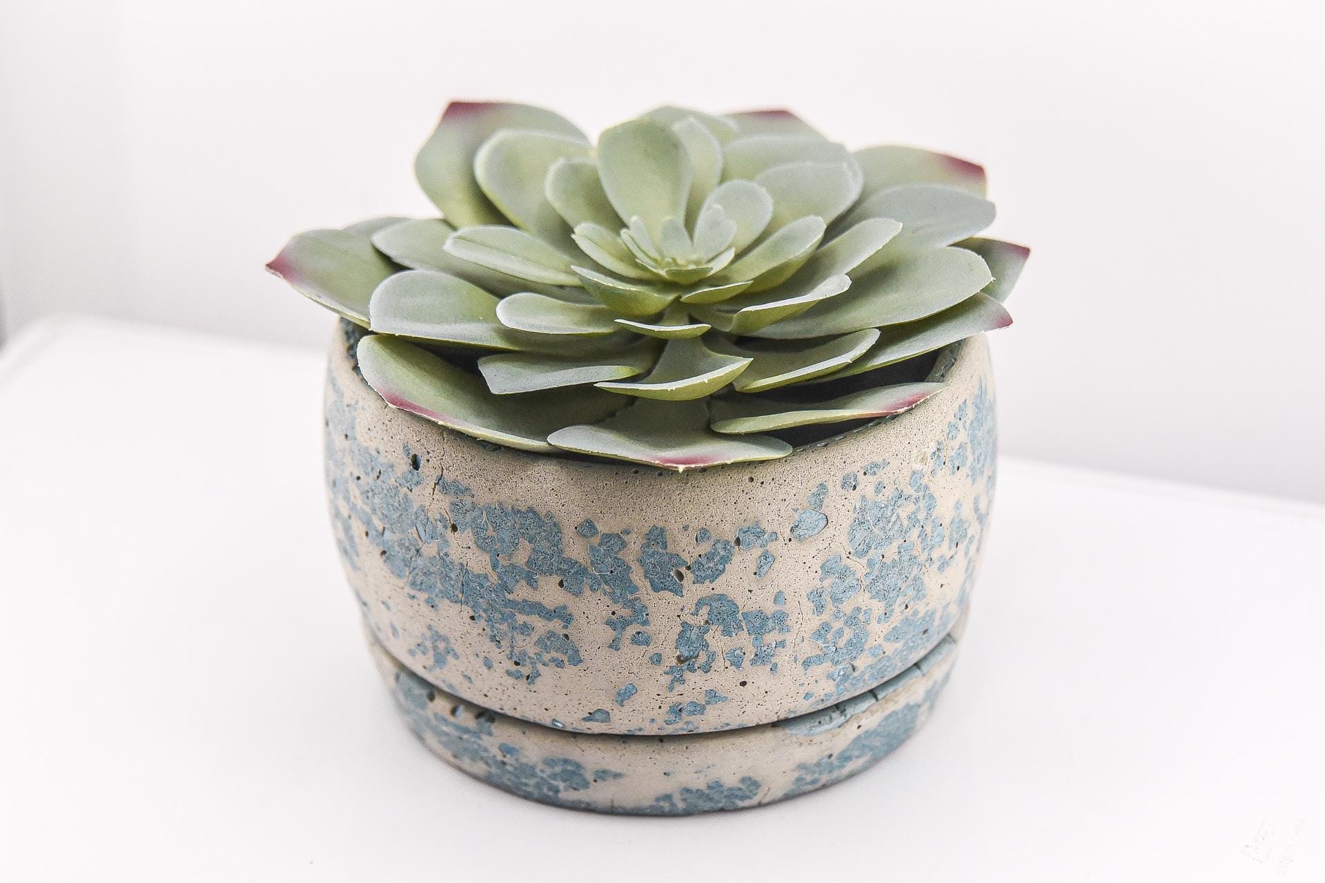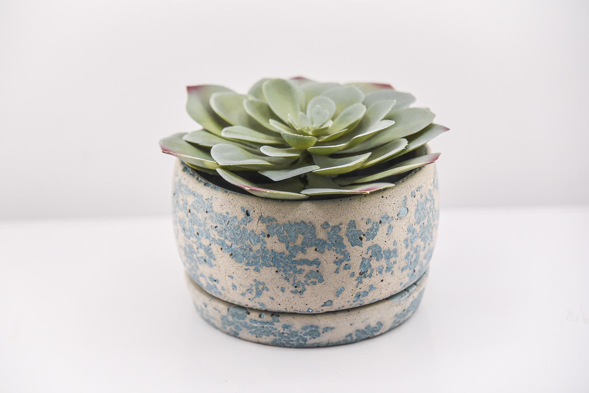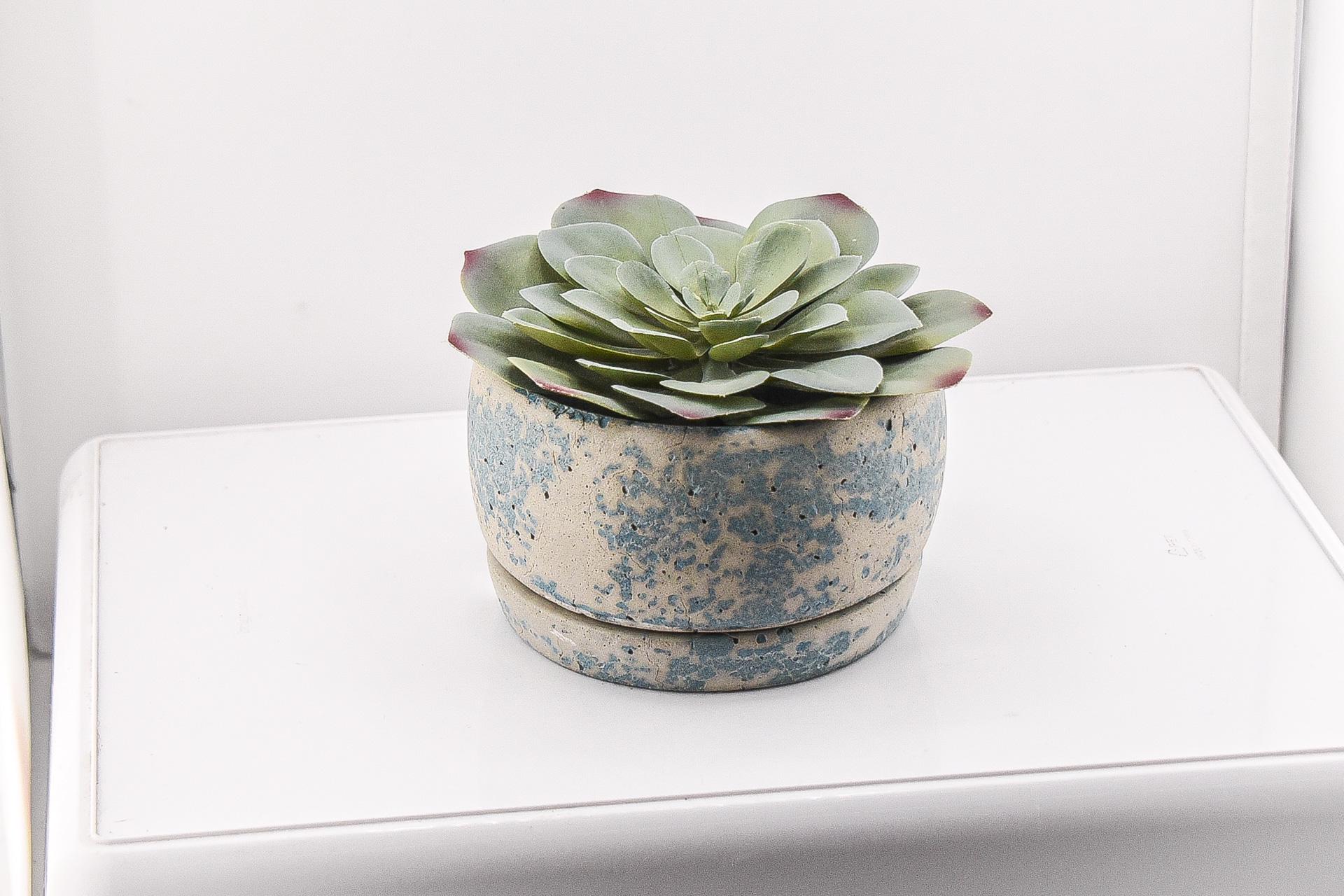 Bring a calm, modern feel to your space with this handmade concrete plant pot, thoughtfully designed for succulents, bonsai, and small houseplants. Each planter is individually cast and finished by hand using a unique two-step surface process that creates a soft, organic texture and subtle color variation—no two pieces are ever exactly alike. The sturdy concrete construction gives the pot a natural, grounded presence while still feeling clean and contemporary. A matching drainage tray is included to help protect surfaces and keep watering simple, making this planter as practical as it is beautiful. Perfect for windowsills, desks, shelves, or as a thoughtful gift for plant lovers. Dimensions: • Inner: 4" diameter × 1.5" depth • Outer: 4.5" diameter × 3" height Details: • Handmade from solid concrete • Custom two-step textured finish • Includes fitted drainage tray • Ideal for succulents, cacti, or bonsai • One-of-a-kind surface variation • Modern, minimalist design This planter adds a quiet, sculptural touch to any home or workspace and pairs beautifully with your favorite greenery.